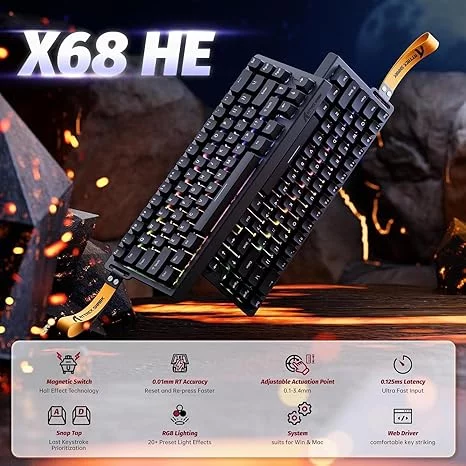 ATTACK SHARK X68 HE Rapid Trigger Keyboard Magnetic Switch Bakıda rəsmi zəmanətlə satılır.