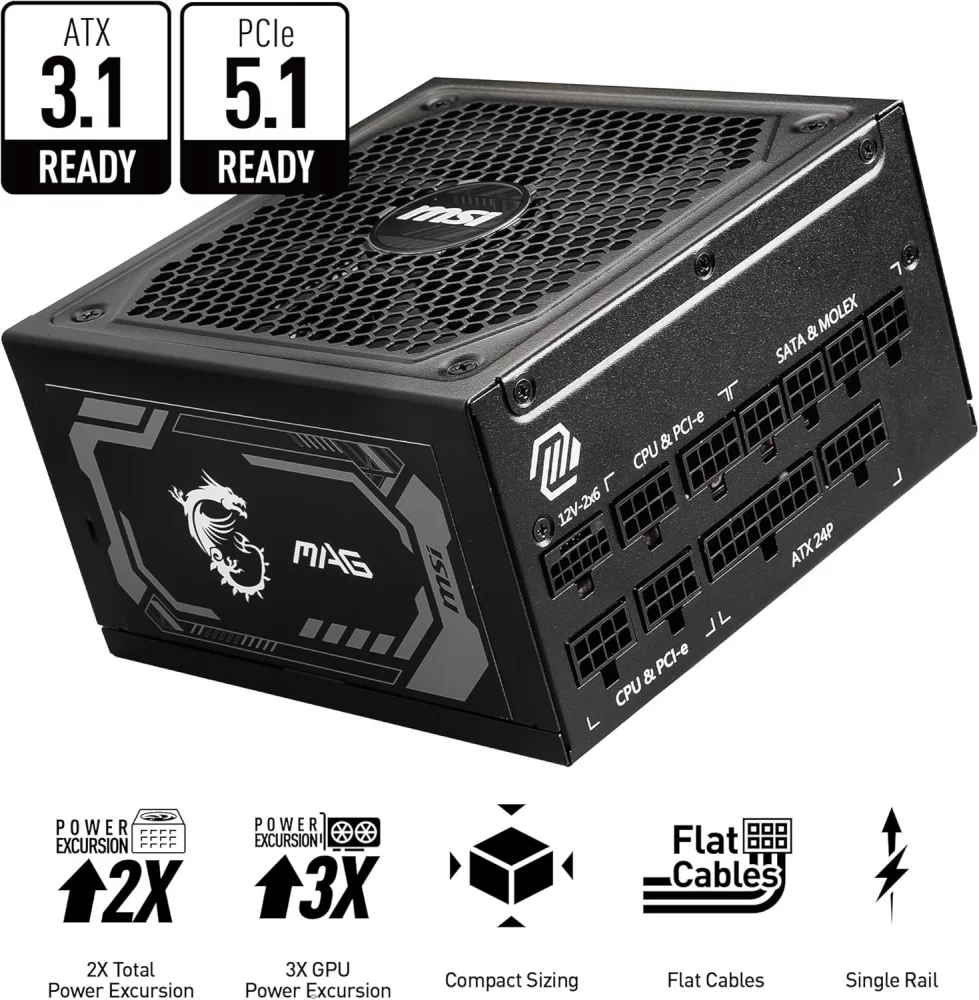 MSİ MAG A1000GL PCIE5 1000W Gold 80+ Power Supply Bakıda rəsmi zəmanətlə satılır.
